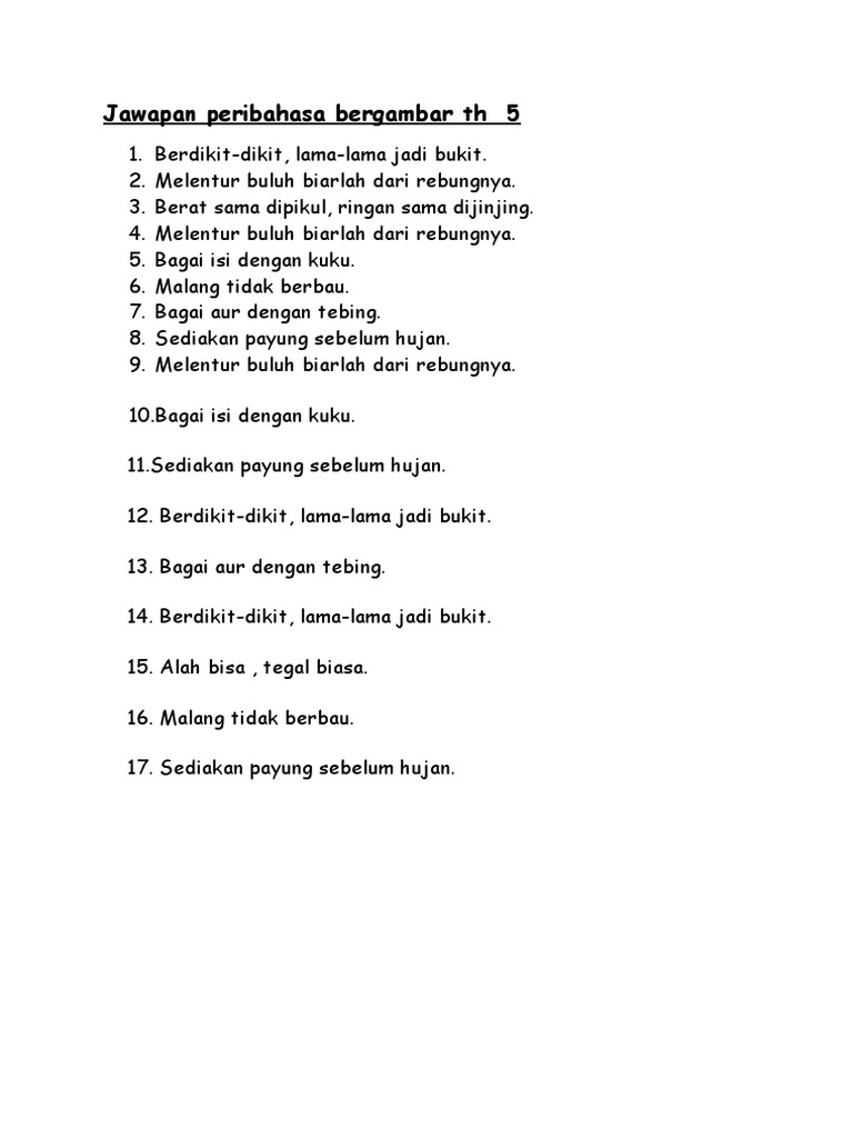 Selain itu, latih tubi peribahasa melayu juga disediakan di laman web ini, pelajar boleh membuat ulang kaji atau percubaan pada contoh soalan dan latihan secara percuma. Seperti isi dengan kuku : Bagai kuku dengan daging adalah peribahasa yang menggambarkan kedekatan dua orang yang sangat melekat dan jarang melihat mereka berpisah. Ke bukit sama didaki, ke lurah sama dituruni 4. Bagai cincin dengan permata bagai aur dengan tebing bagai kacang lupakan kulit bagai isi dengan kuku bagai kertas dengan. Semua peribahasa dengan kata kuku, selalu ada di situs jagokata. Peribahasa adalah satu susunan kata atau ayat yang mempunyai maksud tertentu yang merujuk kepada maksud seliang bagai tebu, serumpun bagai serai. Bagai pungguk merindukan bulan artinya mengharapkan sesuatu yang mustahil dapat dicapai. Soalan peribahasa sama maksud ini pernah ditanya dalam peperiksaan sijil pelajaran malaysia (spm). Start studying peribahasa sama maksud y10. Berusaha terus dengan keras hati hingga maksud tercapai. 3.air dicencang tak akan putus. Bagai air titik ke batu.