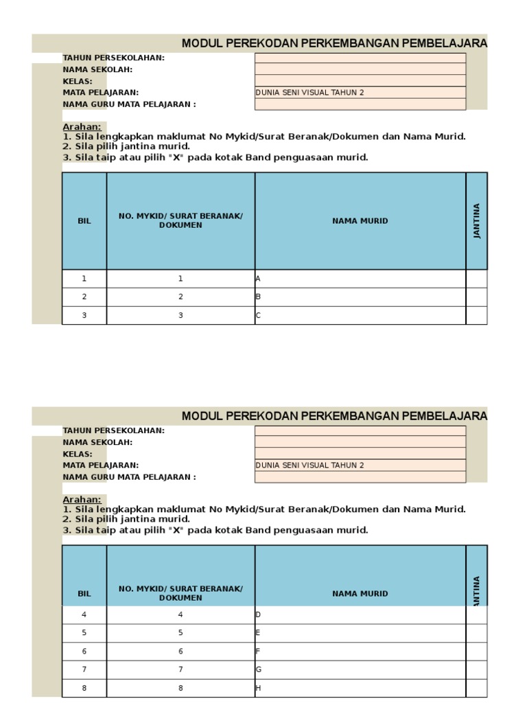 Modul offline dsv tahun 2 by norashikin6md6yusoff. Templat perekodan semua mata pelajaran (17) di tahap 1 tahun 1/2/3 6. Pn deepa rani letchimun arahan: Panduan penggunaan modul perekodan perkembangan pembelajaran murid. Template pelaporan pbd tahun 2 bagi guru kelas mengandungi beberapa worksheet/tab: